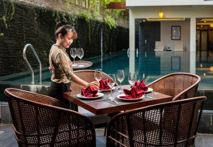Hotellets restaurant, Cau May, serverer både asiatiske og vestlige retter. Derudover har de et spændende udvalg af vine og cocktails, mixet af deres erfarne bartendere.