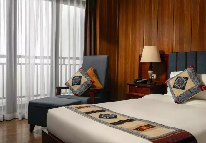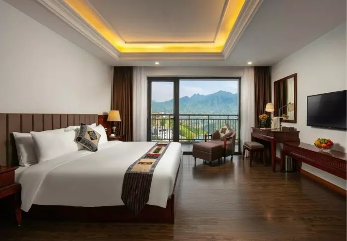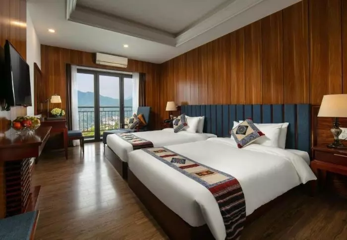 Hotellets 104 værelser er rummelige og elegant indrettet i traditionel vietnamesisk-stil med mørke træmøbler. De er udstyret med alt, hvad du behøver for et behageligt ophold herunder wi-fi, aircondition, værdiboks, TV samt siddeområde. Badeværelset har bruser og byder på gratis toiletartikler, hårtørrer, badekåbe og slippers. De fleste værelser har desuden store vinduespartier, der byder på poetiske udsigter over Sapas landskaber.