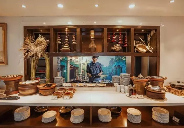 I restauranten, Citronella, venter dig kulinariske oplevelser morgen, middag og aften. Her tryller kokken med frisk mynte, koriander, ingefær, kardemomme, gurkemeje, stjerneanis og mange andre eksotiske krydderier fra resortets egen køkkenhave. Han er genial til at finde den rigtige balance mellem lokale og vestlige smage. Glæd dig!
