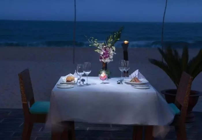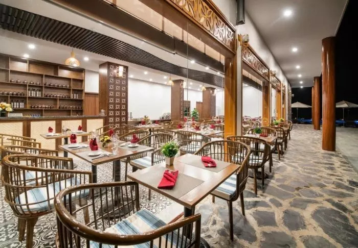 Når appetitten sig, kan du besøge hotellets restaurant, The Spice House, hvor menuen byder på vietnamesiske specialiteter og middelhavsinspirerede retter lavet på friske råvarer. Til aften kan du runde dagen af i strandbaren The Malabar, der serverer cocktails, øl og klassiske drinks i en afslappet atmosfære, hvor bølgerne er den vigtigste baggrundsmusik.