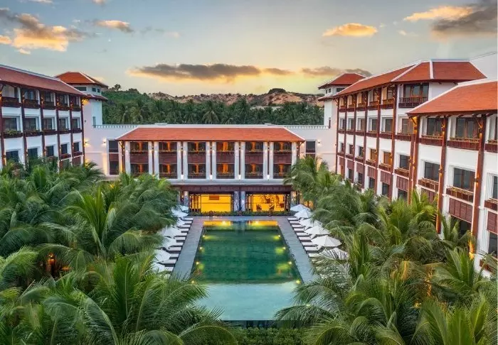 The Anam Mui Ne Hotel ligger direkte på stranden med udsigt til det glitrende azurblå hav i det sydlige Vietnam. Med Mui Nes berømte sandklitter på den ene side og Mui Nes honningfarvede sandstrand på den anden bliver beliggenheden næppe meget bedre.