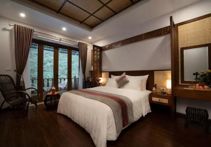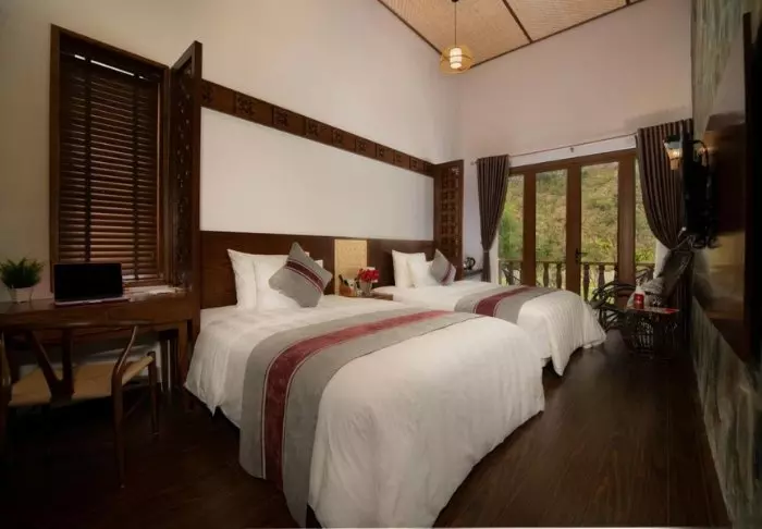 Mai Chau Mountain View byder på smagfuldt indrettede værelser med lyse vægge og fine, mørke træmøbler, der omfavner den vietnamesiske æstetik. Hvert værelse tilbyder wi-fi, aircondition, værdiboks, minibar, tv, telefon og elkedel så du kan lave dig en kop te eller kaffe. Badeværelset er udstyret med toiletartikler, hårtørrer, badekåbe og tøfler. Fra din balkon eller terrasse kan du beundre den vidunderlige udsigt over de omkringliggende rismarker og bjerge.