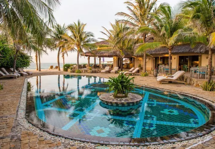 Blue Ocean tilbyder privat strand med liggestole og parasoller, hvorfra du kan nyde udsigten over det turkisblå hav. Der er en del bølger ved Mui Ne, så er du ikke meget for at bade i bølgen blå, har resortet heldigvis et indbydende poolområde, hvor du kan tage en forfriskende dukkert og slappe af med en god bog.
