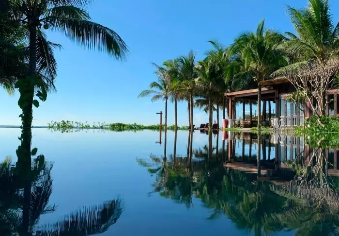Resortets pool ligger med udsigt over floden, og her finder du både liggestole og parasoller. I Oasis Spa kan du nyde afslappende behandlinger, omgivet af lotusdamme og frugttræer.