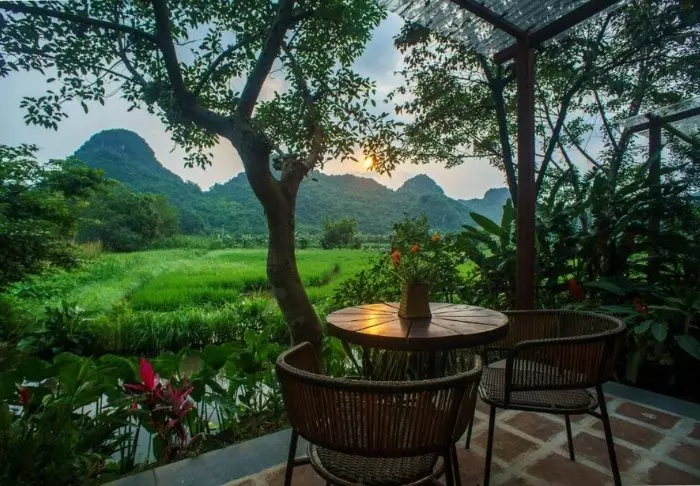 Blandt frodige rismarker, kalkstensklipper og rislende floder ligger Tam Coc Garden Resort. Her kan du trække dig tilbage og nyde Ninh Binhs enestående natur, der kan tage pusten fra enhver.