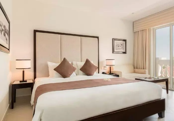 Du bor som standard i et deluxe-værelse med store vinduer og en varm indretning i mørkt træ, dæmpede farver og bløde tekstiler. Værelset har dobbeltseng eller to enkeltsenge, eget badeværelse med bruser, toiletartikler og hårtørrer. Derudover har du aircondition, værdiboks, wi-fi, tv, elkedel og mineralvand på flaske. Minibaren er fyldt og inkluderet i opholdet.