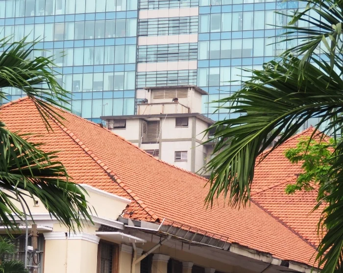 Når du står front mod kirken, har du en grå bygning i ryggen. Nogle vil måske genkende den som “Pittman Apartments” på 22 Gia Long Street fra det berømte billede taget den 29. april 1975 af den hollandske fotograf Hubert van Es i forbindelse med Saigons fald. Det var her, en helikopter landede på taget – en scene, som mange fejlagtigt troede fandt sted ved den amerikanske ambassade. Din guide fortæller den dramatiske historie om evakueringen og den skjulte rolle, bygningen spillede i krigens sidste timer.