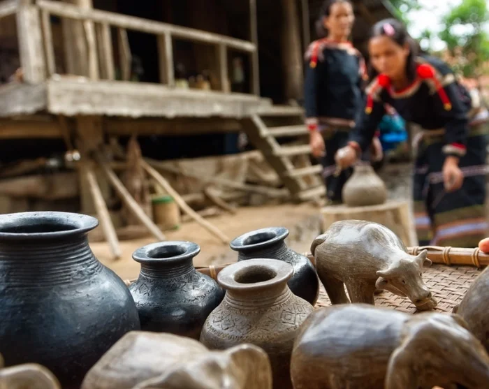 Efter morgenmaden cykler du til landsbyen Yang Tao, som ligger ca. 12 km fra Lak Tented Camp. Her venter en smuk tur gennem grønne rismarker, hvor du kan være heldig at se flokke af bøfler og køer. I landsbyen oplever du det fine håndværk bag den traditionelle M’nong-keramik og besøger kakaoplantager, hvor du smager den særlige fermenterede kakaovin.