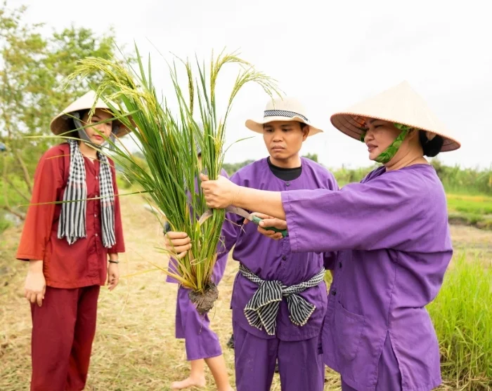 Du fortsætter til vores sociale bæredygtighedsprojekt i Vinh Long, som er startet af vores lokale samarbejdspartner. Her venter en rolig gåtur gennem landsbyen, hvor din guide undervejs giver dig indblik i projektet. Du får også mulighed for at tage del i det traditionelle landbrugsliv. Sammen med lokale bønder prøver du kræfter med risdyrkning, enten ved at plante de spæde risplanter eller ved at hjælpe til med høsten, alt efter sæsonen. Det er en lærerig og jordnær oplevelse, der giver dig et unikt indblik i hverdagen i Vietnams landdistrikter og i det arbejde, der ligger bag et bæredygtigt landbrug. Når du deltager på turen, er du samtidig med til at gøre en forskel for familierne i Vinh Long, da en procentdel af rejsens pris går direkte til projektet, som du kan lære mere om her.