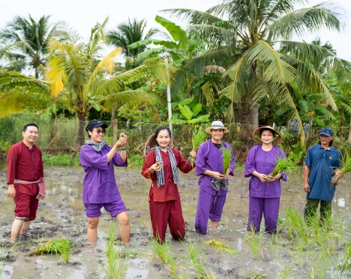Du fortsætter til vores vores sociale bæredygtighedsprojekt i Vinh Long, som er startet af vores lokale samarbejdspartner. Her venter en rolig gåtur gennem landsbyen, hvor din guide undervejs giver dig indblik i projektet. Du får også mulighed for at tage del i det traditionelle landbrugsliv. Sammen med lokale bønder prøver du kræfter med risdyrkning, enten ved at plante de spæde risplanter eller ved at hjælpe til med høsten, alt efter sæsonen. Det er en lærerig og jordnær oplevelse, der giver dig et unikt indblik i hverdagen i Vietnams landdistrikter og i det arbejde, der ligger bag et bæredygtigt landbrug. Når du deltager på turen, er du samtidig med til at gøre en forskel for familierne i Vinh Long, da en procentdel af rejsens pris går direkte til projektet, som du kan lære mere om her.