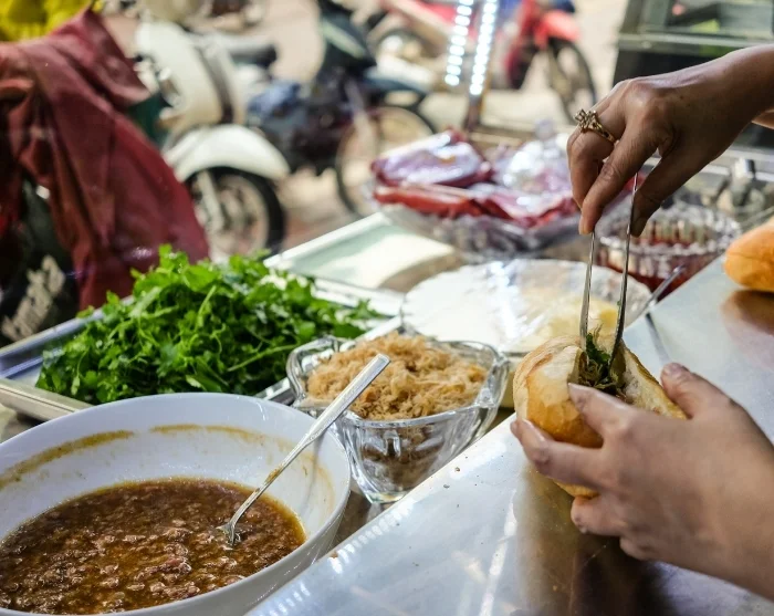 Til frokost kan du gå på jagt efter Hanois berømte streetfood. Prøv en dampende skål pho, nyd duften af grillede bun cha eller tag en sprød banh mi med på farten.