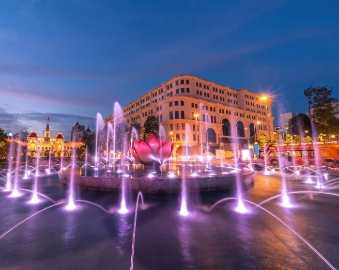Omkring skumring kan du slentre en tur ned ad Nguyen Hue-promenaden, som er omgivet af blomster, springvand og stemningsfuld arkitektur. Her kan du opleve det særlige byliv, når lokale samles med gadekunstnere, dansere og unge familier i et charmerende virvar. Atmosfæren er afslappet og livlig, og det hele kulminerer omkring det oplyste rådhus.