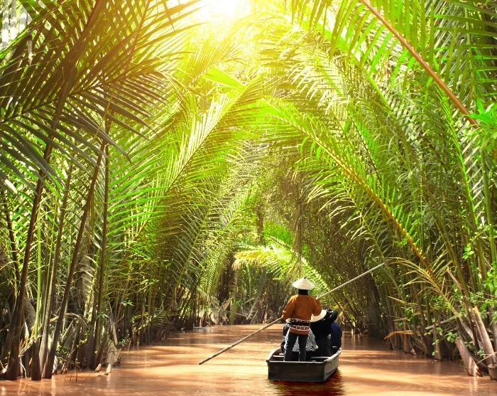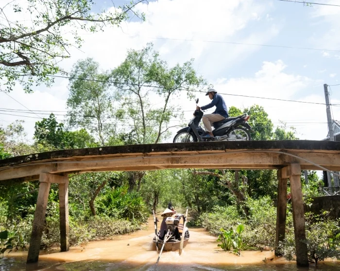 Dernæst flyver du til Ho Chi Minh City, og herfra oplever du det frodige Mekong-delta, sejler mellem palmer og små kanaler og besøger vores bæredygtige og sociale udviklingsprojekt i Vinh Long, hvor du møder lokalbefolkningen og får indblik i hverdagen på landet.