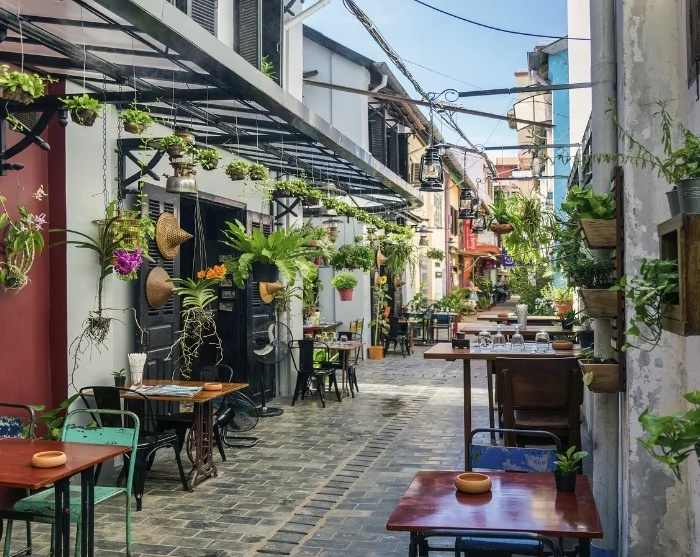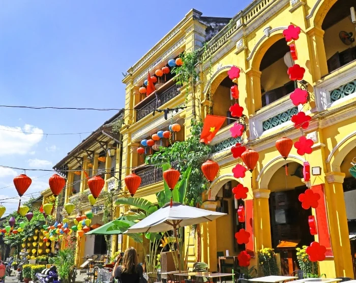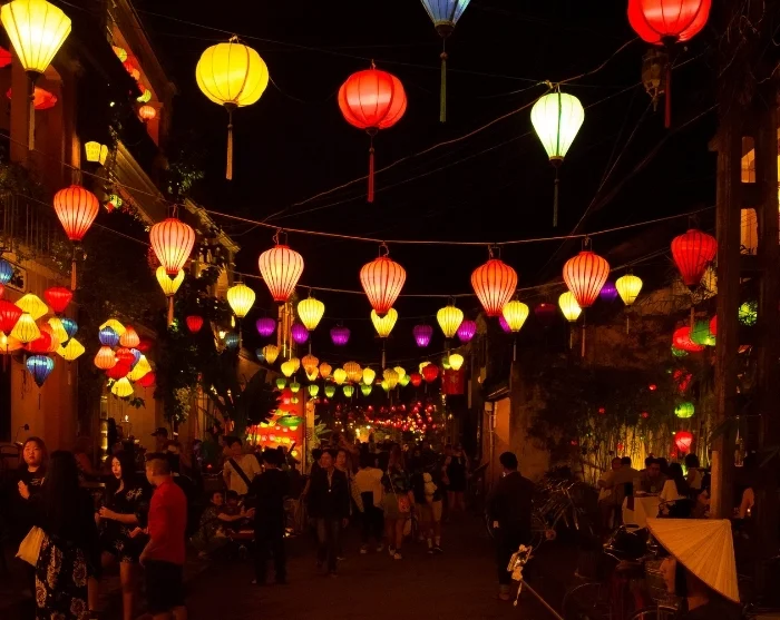 Væk fra floden breder en labyrint af små stemningsfulde gader sig. Her mødes du af et farverigt miks af japanske træhuse, kinesiske forsamlingshuse, franske kolonitidsbygninger og de karakteristiske købmandshuse. Farverige lanterner hænger som guirlander over gaderne og skaber en særlig stemning, især når mørket falder på. Butikker, gadekøkkener, caféer og små restauranter ligger som perler på en snor og indbyder til afslappede stunder og nysgerrige opdagelser.