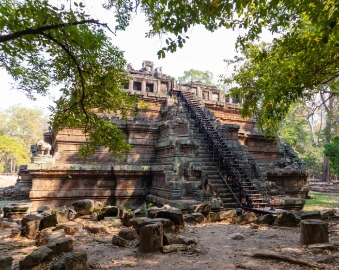 Du besøger også Phimeanakas, et tempel formet som en pyramide med to damme bagved, som tidligere blev brugt til religiøse ritualer. Gå op til templets top og nyd den flotte udsigt over Angkor-området.