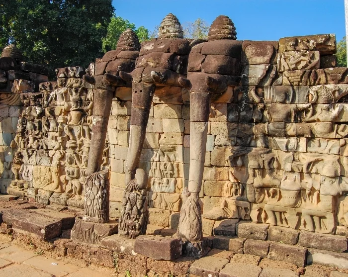 Oplev også Elefantterrassen hvor en lang række udskårne elefanthoveder danner en mur. Herfra kunne kong Jayavarman i sin tid overskue sin hær. Lige i nærheden ligger Terrassen for de Spedalske Konger med en statue af Yama, dødsguden i hinduistisk mytologi.