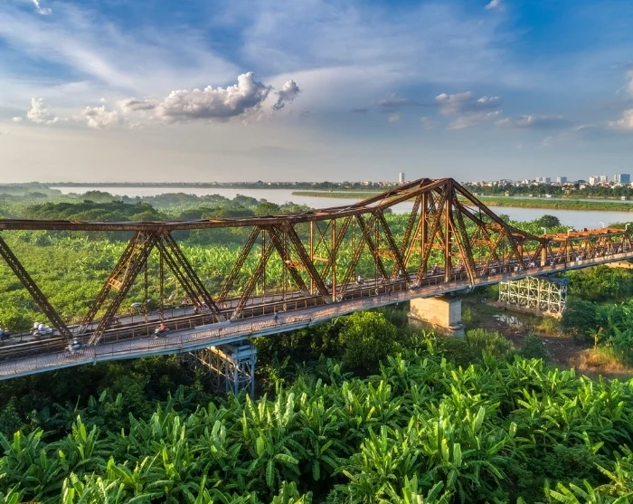 Efter en spændende cyclotur besøger du den historiske Long Bien-bro, som er et ikonisk vartegn fra den franske kolonitid, opført i begyndelsen af 1900-tallet. Den karakteristiske jernbro strækker sig over den Røde Flod og blev kraftigt beskadiget under Vietnam-krigen, men står i dag som et stærkt symbol på Hanois modstandskraft. Broen er forbeholdt tog, cyklister og fodgængere og byder på en stemningsfuld oplevelse. Her kan du møde lokale, der cykler på arbejde eller sælger frugt ved skinnerne, og nyde udsigten til små, grønne flod-øer med dyrkede marker midt i storbyen – et populært motiv for fotografer og rejsende, der ønsker at indfange Hanois sjæl.