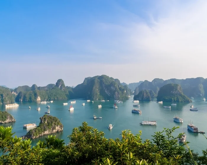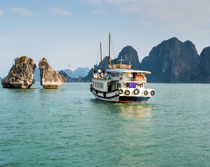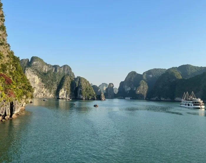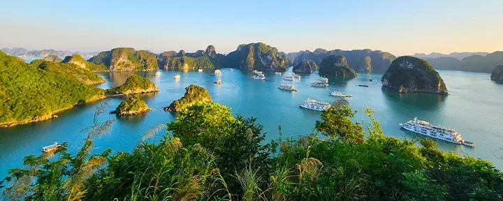 Fra Hanoi går turen mod øst til Ha Long-bugten, hvor du sejler på et minikrydstogt blandt kalkstensklipper. Du besøger Ti Top Island med mulighed for badning og udsigt fra toppen, udforsker en stor drypstensgrotte, overnatter ombord og vågner til morgenlys over det smaragdgrønne vand.