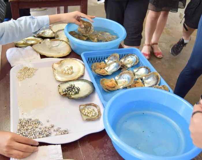 Senere lægger båden til ved en lokal perlefarm, hvor du får indblik i den traditionelle perledyrkning. Her har du også mulighed for at hoppe i en kajak og padle stille gennem det naturskønne landskab.