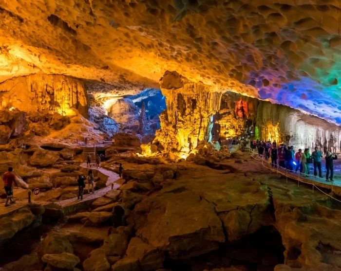 Turen fortsætter til Sung Sot-grotten, som er Ha Long-bugtens største og mest imponerende drypstenshule. Her belønnes du med et magisk indre landskab af stalaktitter og stalagmitter, som har taget millioner af år at forme. Vi anbefaler gode, lukkede sko, især i vådt vejr.