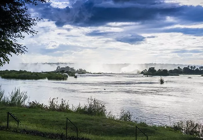 Du går ned til et loungeområde, som ligger helt nede ved Zambezi-floden. Sætter dig i en stol med udsigt til vandet. Til din højre side forsvinder floden dybt ind i landet. Til din venstre side…. Du griber kameraet. Til din venstre side – få hundrede meter fra dig – danser den mest perfekte regnbue, du nogensinde har set. Den går fra den ene bred af floden til den anden og står som en perfekt ramme omkring de flere hundrede meter høje vandsprøjt fra de mægtige Victoria Falls, som du har udsigt til her fra hotellet.